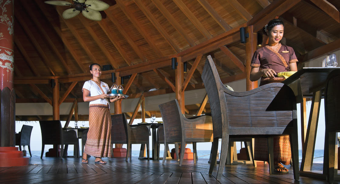 走到泻湖之上,进入传统的高脚柚木屋,绚丽的夕阳为整个环境带来一抹奇妙的色彩。可选择泰国各地的丰富美食与家人朋友共享——来自东北部的酸辣沙拉、来自南部的辣椰子咖喱,还有来自中部的流行美食,伴以芬芳的香米饭。品尝芒果糯米饭或椰奶煮香蕉等传统甜点,尽享清爽口感。