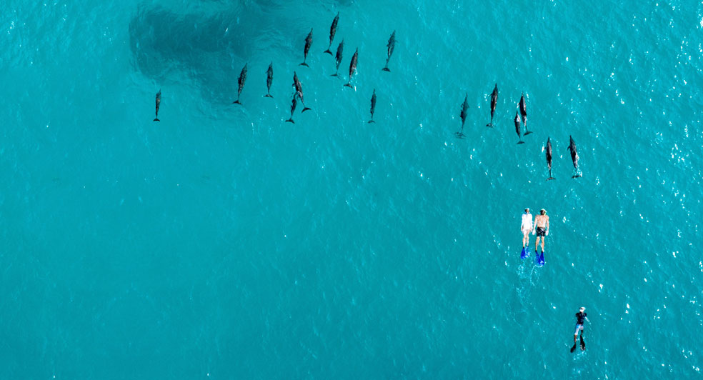 看看世界上最群居的哺乳动物之一在珊瑚礁周围玩耍和游弋。 惊奇地观看这个优雅的物种嬉戏和跳跃,亲耳聆听它们如何通过一系列迷人的声音进行交流。